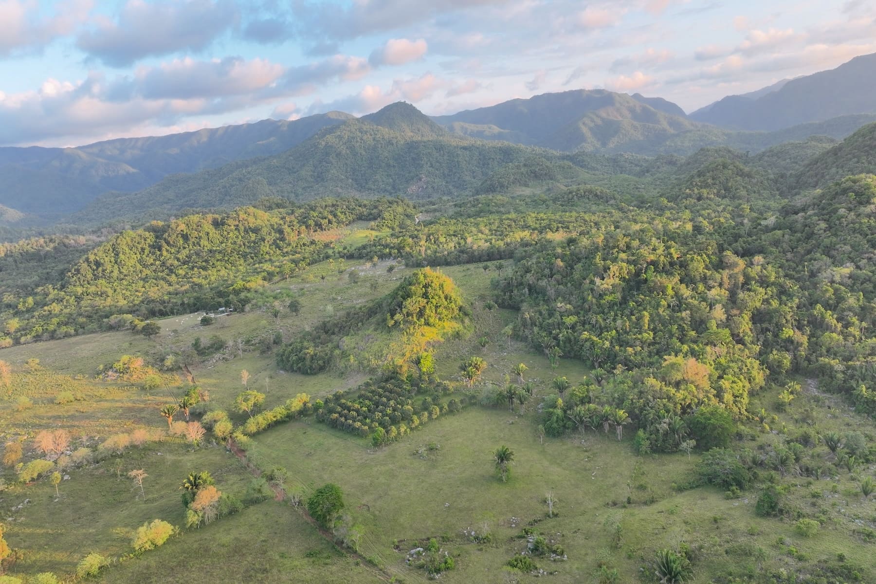 The hills are gently rolling and not very high, with beautiful open pastures punctuated by shade trees, various Rock formations and mountain views all around. Property is good, solid land gently rising North toward a steep mountain ridge overlooking the entire Valley. Much of the property would make incredible home sites. Approximately 155 acres are already cleared and in the form of pasture with fenced paddocks. The remaining 45 acres remains in forest with an additional Mango pasture boasting 80 bearing Mango Trees.