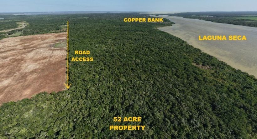 Nestled on the serene south side of Copper Bank, Belize, this remarkable 52-acre property offers approximately 1,007 feet of breathtaking shoreline along the tranquil Laguna Seca. With vast dimensions spanning the lagoon front and extending deep into the lush landscape, this unique parcel presents an unparalleled opportunity for both agriculture and development. Imagine cultivating fertile soil, ideally suited for organic farming, while enjoying the peace of a secluded retreat. This setting is the perfect canvas to build your dream home, allowing you to revel in the harmonious embrace of nature. As you explore the grounds, you'll discover an abundance of local wildlife, including exotic birds and diverse tropical fauna.