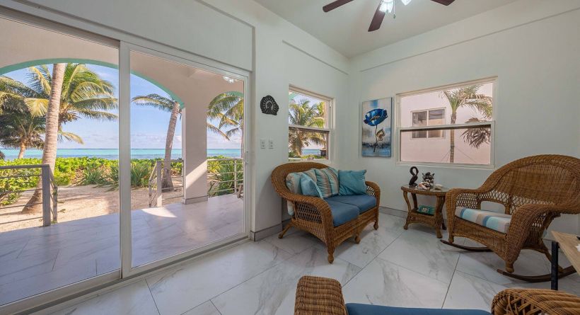 discover breathtaking views and island comfort at casita de sueños! this two bedroom, two bathroom residence spans two levels and showcases stunning belizean hardwood throughout, from the custom staircase to the built-in furniture and accent details. located 7.5 miles north of san pedro town and set directly on one of ambergris caye’s most beautiful beaches, casita de sueños is a solid built concrete beachfront home overlooking the turquoise waters of the mexico rocks marine reserve.