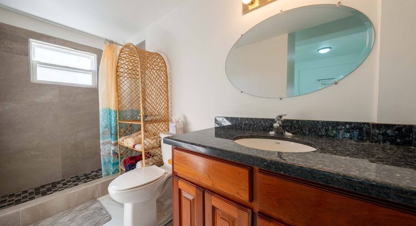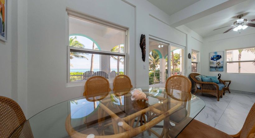 the main level offers an open concept living, dining, and kitchen area designed for full time island living. large hurricane resistant windows and sliding doors bring in natural light and frame impressive sea views. the first bedroom is located on this level and has an ensuite bathroom and garden views.