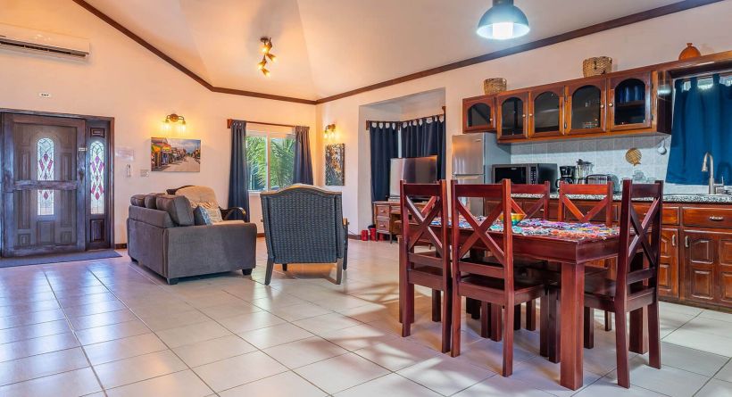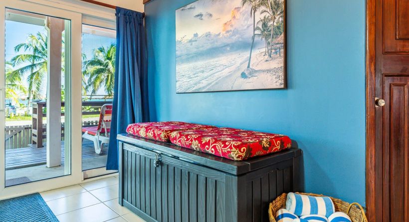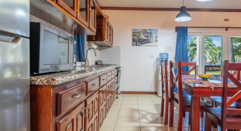 casita playa del parque is a charming sea view home located in the boca del rio area of san pedro town, ambergris caye, belize. this beach home is a two bedroom, one bathroom home that features 1,200 sq ft of living space. the open plan living area opens out to a sea view deck overlooking the caribbean sea and the boca del rio park. the home has a fully equipped kitchen with a six person dining area. the primary bedroom has a king size bed and the second bedroom has two single beds, this allows for versatility when renting. this home is sitting on a property with 45 feet of main road frontage and 70 feet of depth with many mature palm trees throughout. there is ample space for off street parking and additional tropical landscaping!